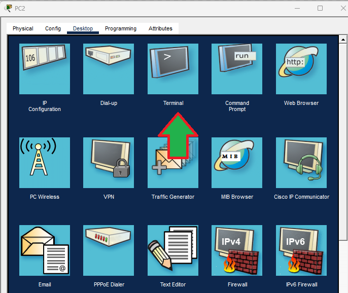 Ahora tendremos que iniciar las el modo consola en el PC2 para empezar las configuraciones, para lo que lo haremos de la siguiente forma: